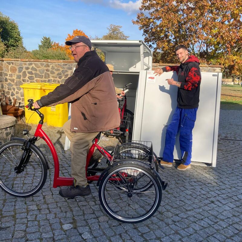 Durch eine Unterstützung von Aktion Mensch und dem Förderprogramm „Mobil mit Rad“ erhielten die Bewohner des Missionshofes Lieske zwei Dreiräder sowie zwei wetterfeste Fahrradgaragen.