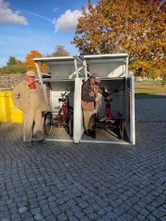 Dreiräder und zwei wetterfeste Fahrradgaragen freuen. Trotz motorischer Einschränkungen können die Garagen selbstständig bedient werden,